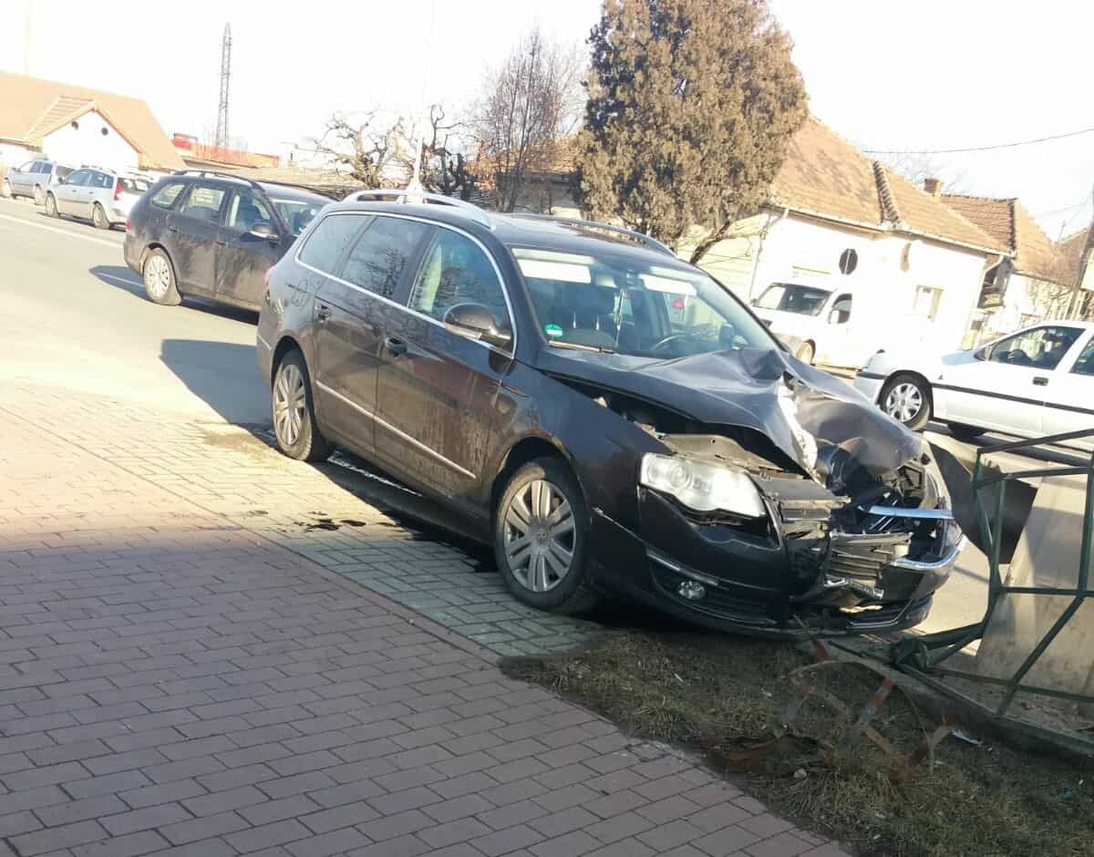 Un autoturism marca Volkswagen Passat a ajuns în parapeții metalici de pe maginea drumului.