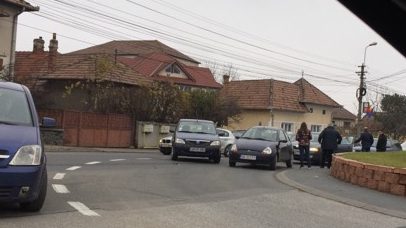 FOTO: ACCIDENT în sensul giratoriu de pe Bulevardul Horea din Alba Iulia. Două autoturisme avariate