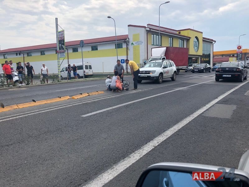 Un accident rutier s-a petrecut luni după-amiaza în municipiul Alba Iulia, pe strada Tudor Vladimirescu, în apropierea complexului comercial Alba Mall. Din primele date, în evenimentul rutier au fost implicate un autoturism marca Dacia Duster, înmatriculat în municipiul București și un biciclist.
