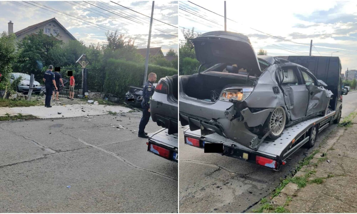 În evenimentul rutier a fost avariat și un alt autoturism, parcat în curtea locuinței.