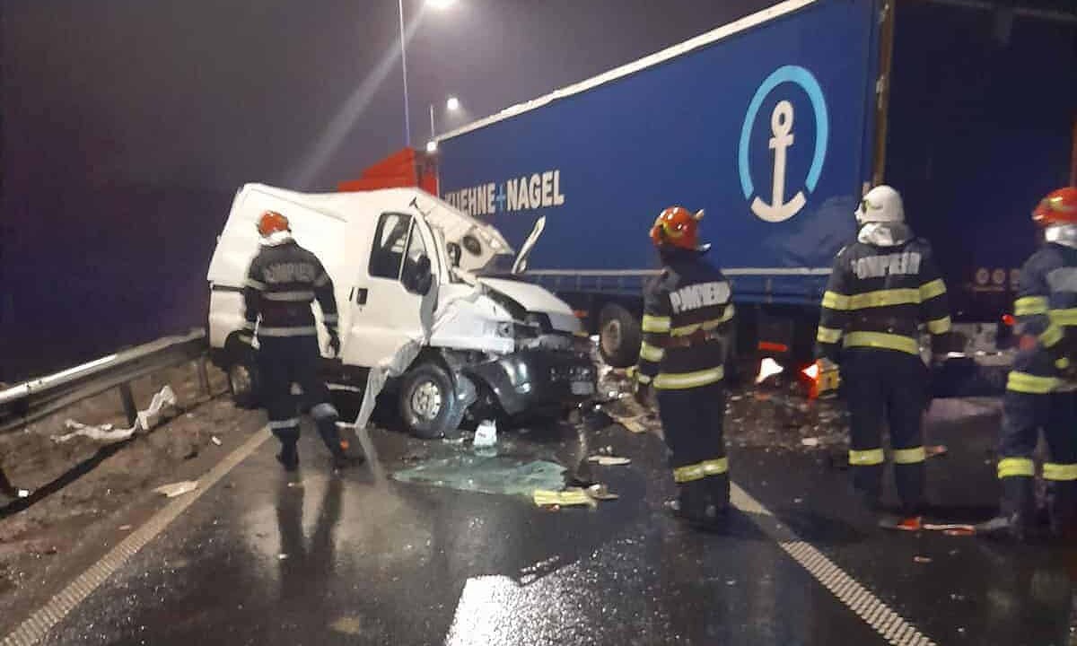 FOTO: Accident mortal pe autostrada A1, în zona bifurcației de la Holdea. Un șofer a decedat. TRAFIC BLOCAT
