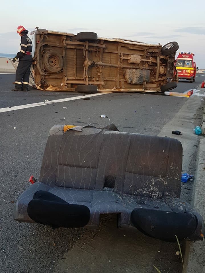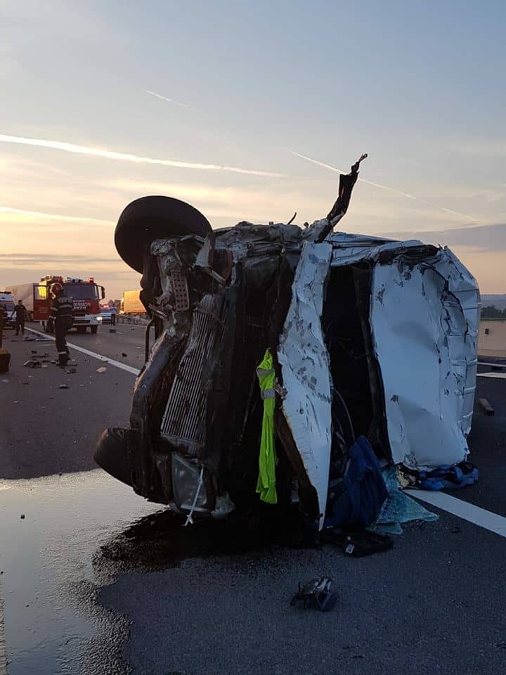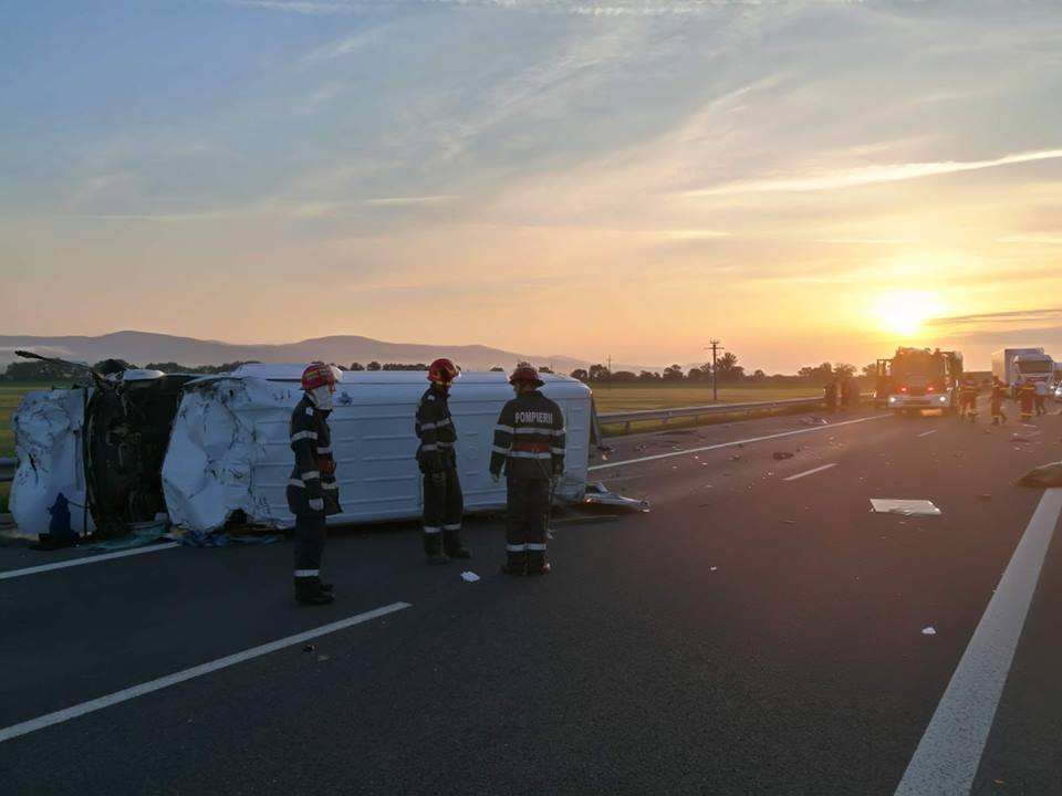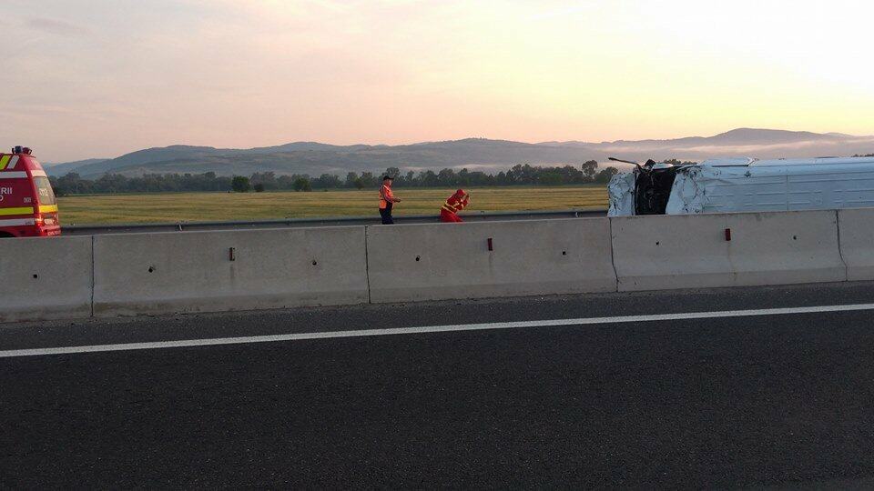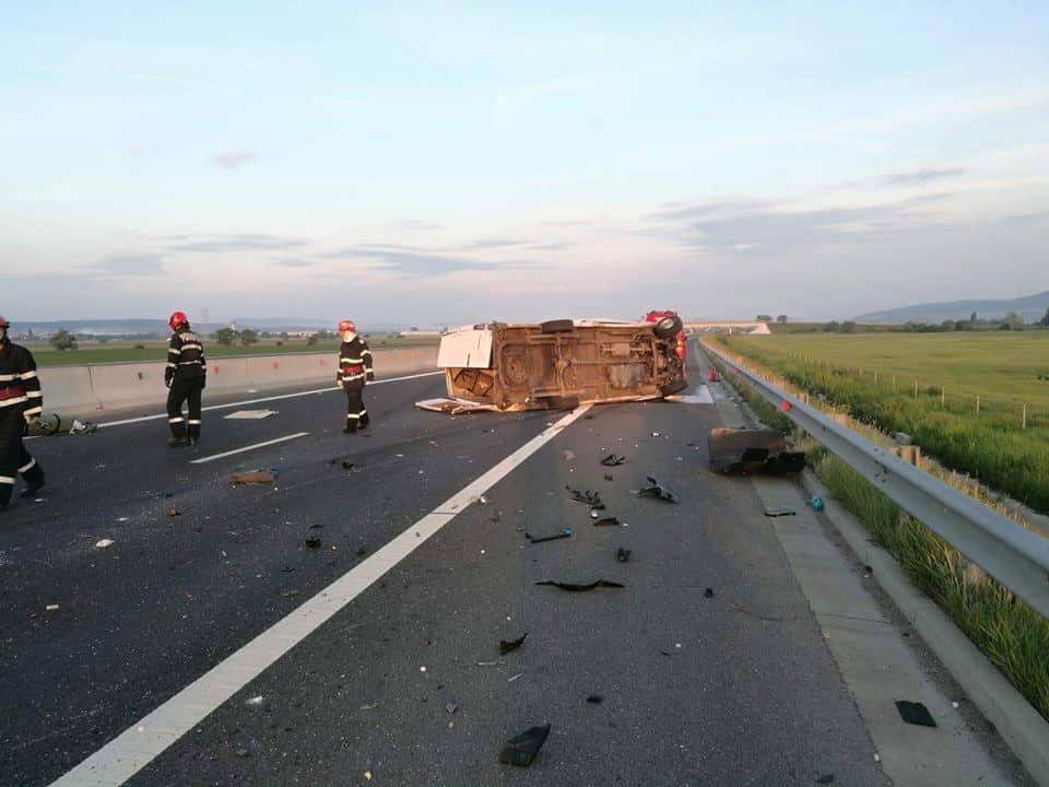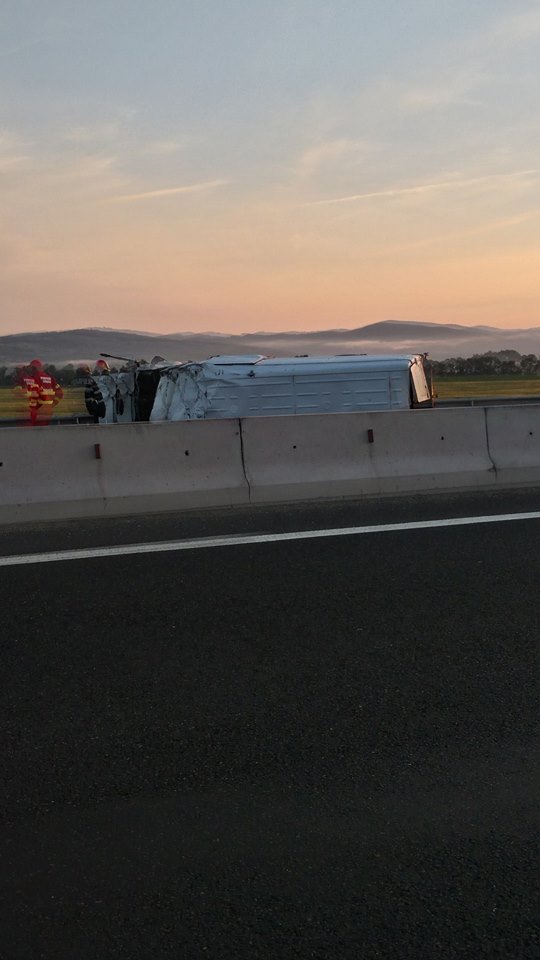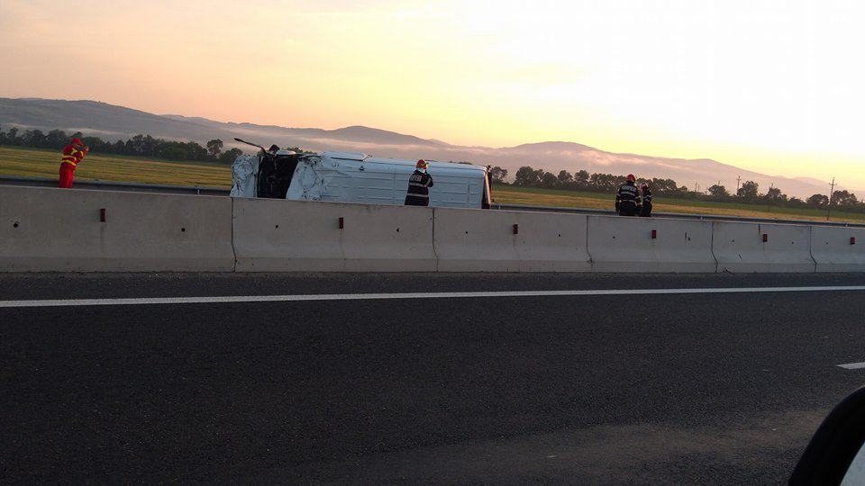 FOTO-VIDEO: ACCIDENT MORTAL pe Autostrada Sibiu-Deva. Un bărbat a decedat după ce s-a răsturnat cu o autoutilitară