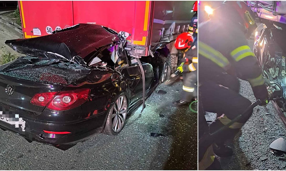 FOTO ACCIDENT MORTAL: Un tânăr de 22 de ani a decedat după ce a intrat cu mașina într-un TIR pe autostrada A1, Sebeș-Sibiu