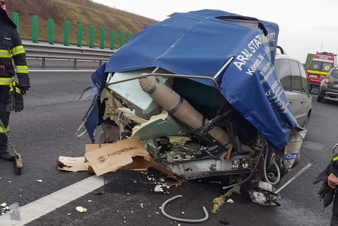 FOTO: Accident pe A1, în zona Pianu. Remorca unei mașini a fost lovită din spate de un aututorism