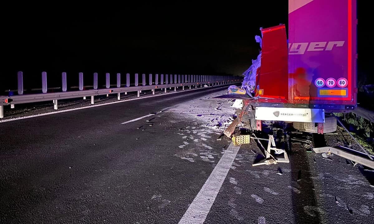 FOTO: Accident pe Autostrada A1, între Cunța și Săliște. Două TIR-uri încărcate s-au ciocnit