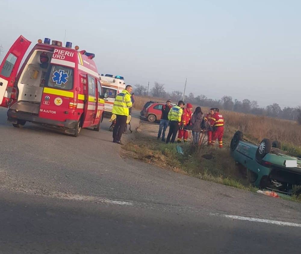 UPDATE: Din primele date, în autoturism se aflau doi tineri. Unul dintre ei a fost rănit.