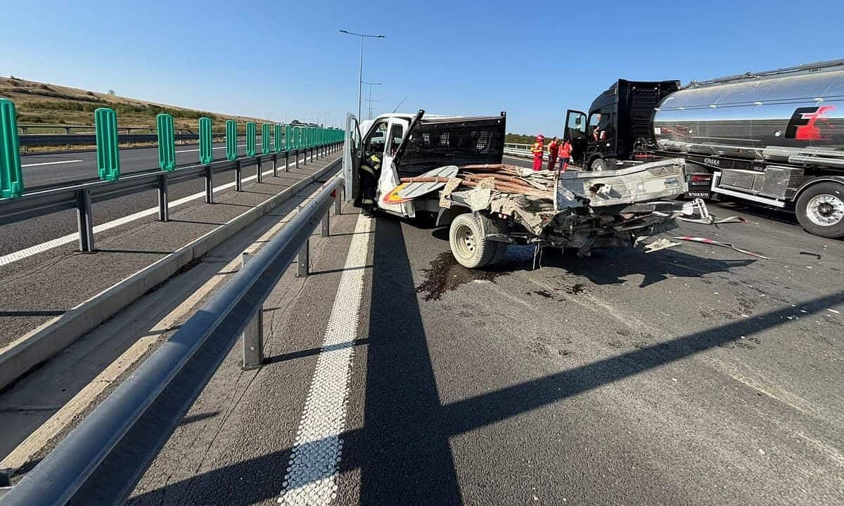 FOTO: ACCIDENT RUTIER GROAZNIC pe autostrada A1, zona Boița. Trei muncitori, decedați după ce au fost spulberați de o autocisternă