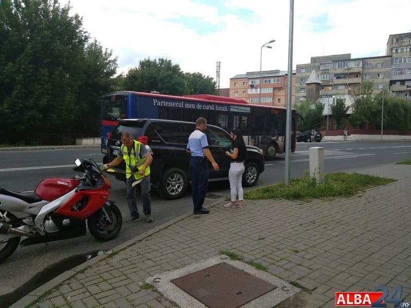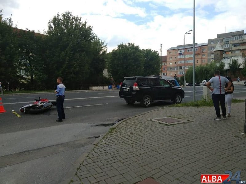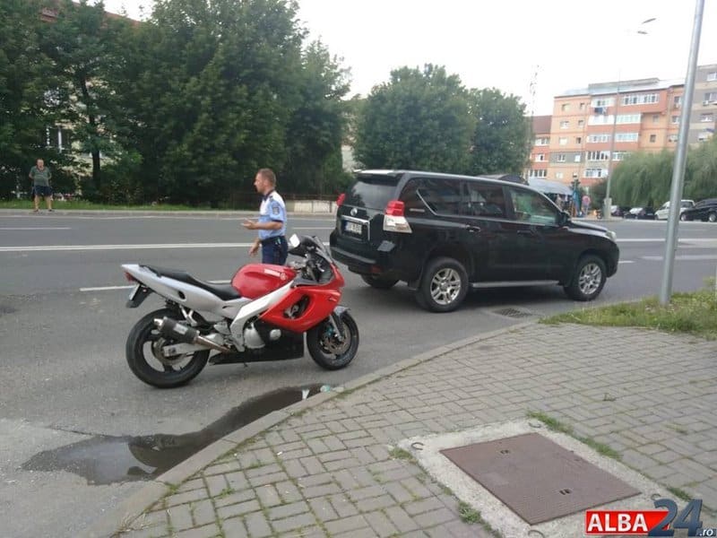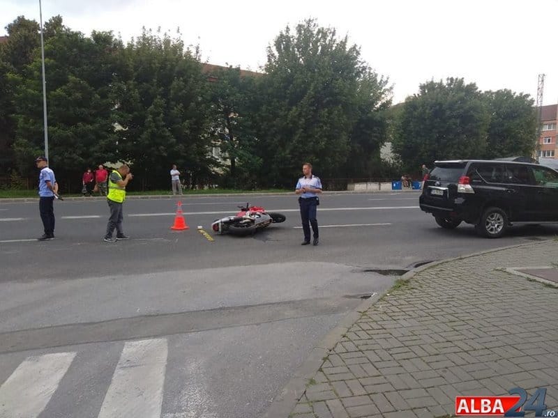 UPDATE: Potrivit IPJ Alba, în 22 iulie, în jurul orei 15.40, o tânără de 28 de ani, din Alba Iulia, în timp ce conducea un autoturism, la intersecţia străzii Livezii cu Tudor Vladimirescu din Alba Iulia, nu s-a asigurat la pătrunderea în intersecţie şi nu a acordat prioritate unei motociclete ce era condusă de un tânăr de 28 de ani, din comuna Galda de Josa.