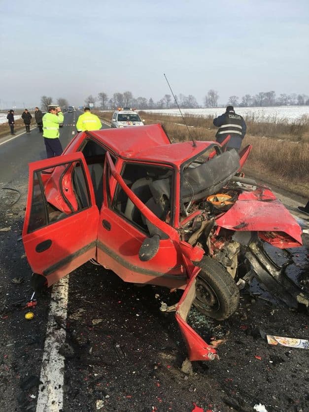 UPDATE: Potrivit IPJ Hunedoara, ancheta efectuată de poliţişti a stabilit că tânărul de 19 ani, care se afla la volanul unei Dacia Solenza, a intrat cu maşina pe contrasens şi a lovit autoturismul BMW în care se aflau cei doi soţi din Cugir, judeţul Alba. Nu au fost descoperite urme de frânare. „Tânărul circula din Direcţia Orăştie spre Sebeş, pe DN 7, pe un sector de drum în aliniament, pe carosabil uscat. Din primele cercetări s-a stabilit că a pătruns pe contrasens”, a informat Bogdan Niţu, purtătorul de cuvânt al Inspectoratului de Poliţie al Judeţului Hunedoara citat de ziarul Adevărul. În urma impactului trei persoane din cele două autoturisme au decedat pe loc.