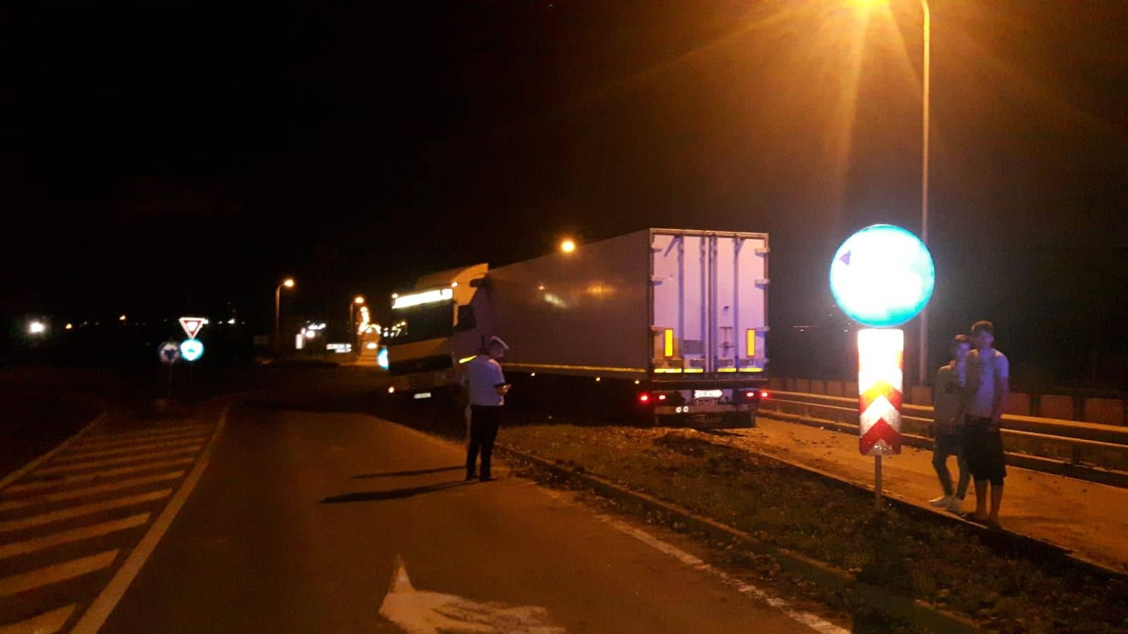 Un accident rutier a avut loc duminică, în jurul orei 1:00, la intrare în municipiul Alba Iulia. Un TIR care circula pe DN1, pe sensul Teiuș - Alba Iulia, a ajuns pe scuarul aflat în zona sensului giratoriu de la intersecția cu șoseaua de centură.