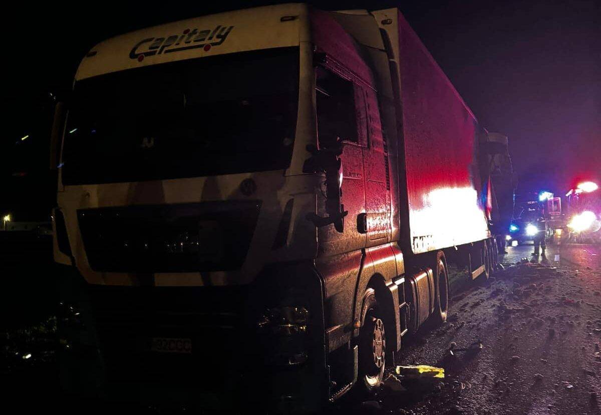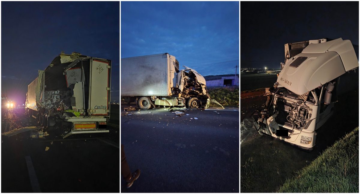În accident sunt implicate două TIR-uri, o persoană necesită îngrijiri medicale, fără persoane încarcerate.