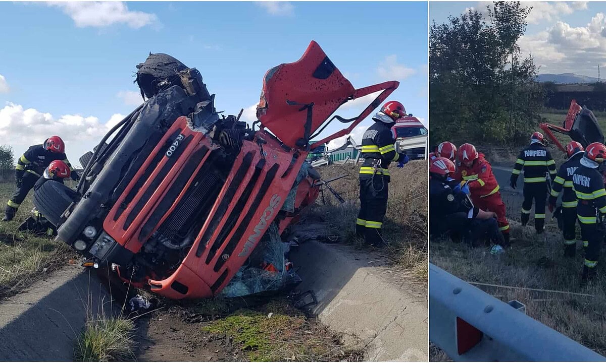Un accident rutier a avut loc, miercuri, 16 octombrie, în jurul orei 11.40, pe Autostrada A1, sensul de mers Orăștie-Sebeș. Din primele informații șoferul unui camion a fost rănit după ce TIR-ul s-a răsturnat.