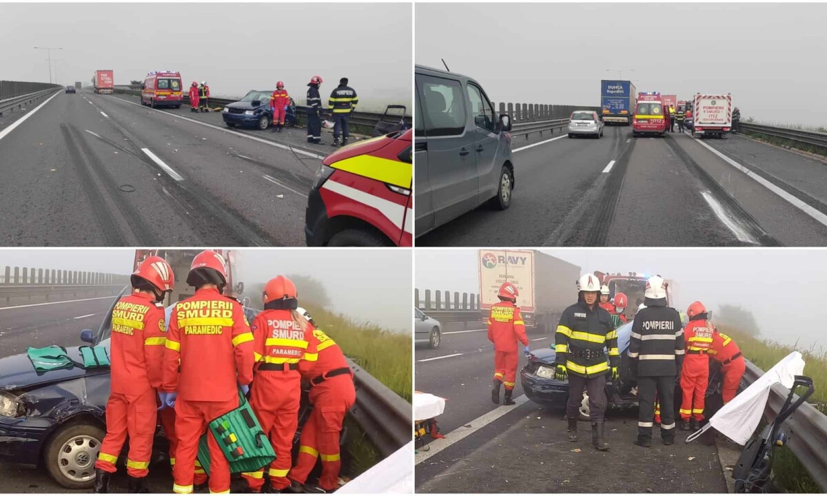 Potrivit ISU Sibiu, pompierii au fost solicitați sa intervină pe A1, sensul de mers Sibiu - Seneș, la un accident rutier.