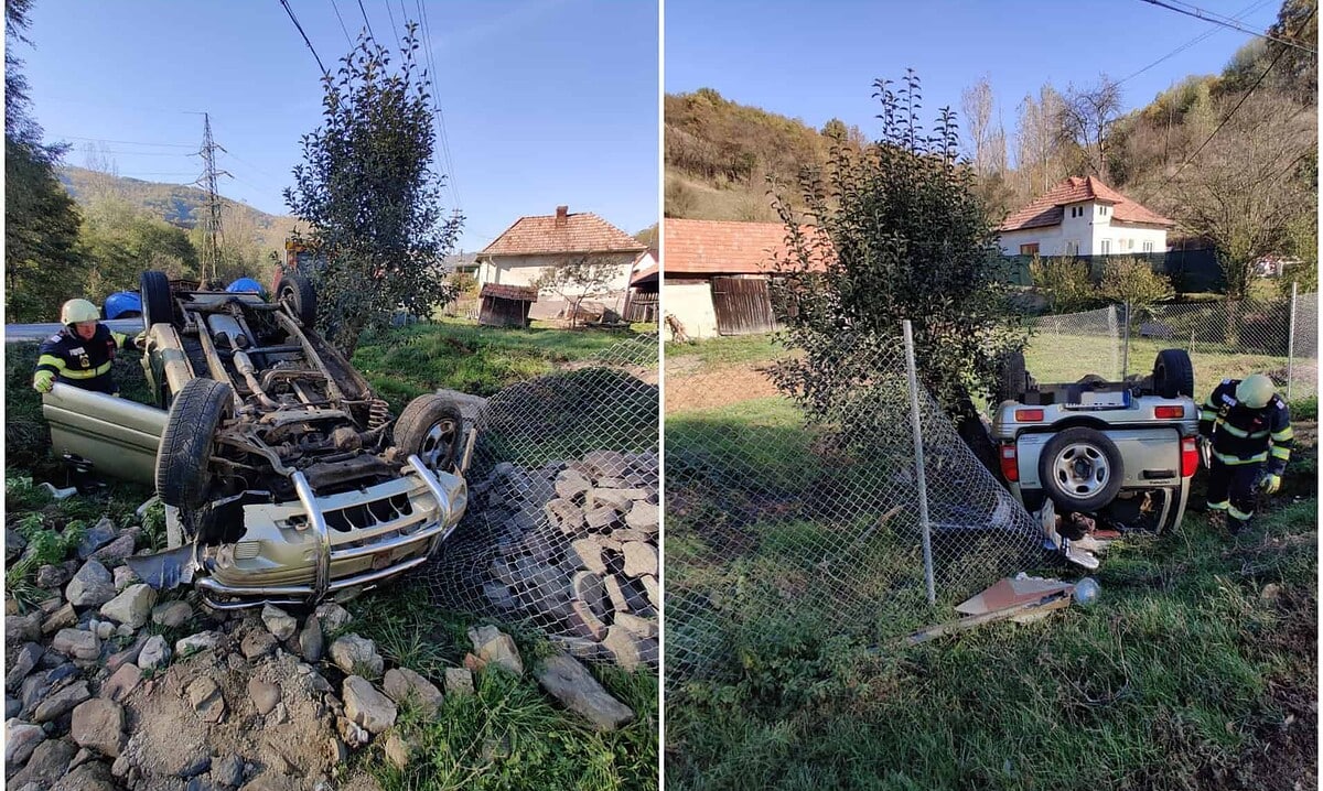 FOTO: ACCIDENT rutier pe DN 74, la Poiana Ampoiului. O femeie a fost rănită după ce s-a răsturnat cu mașina