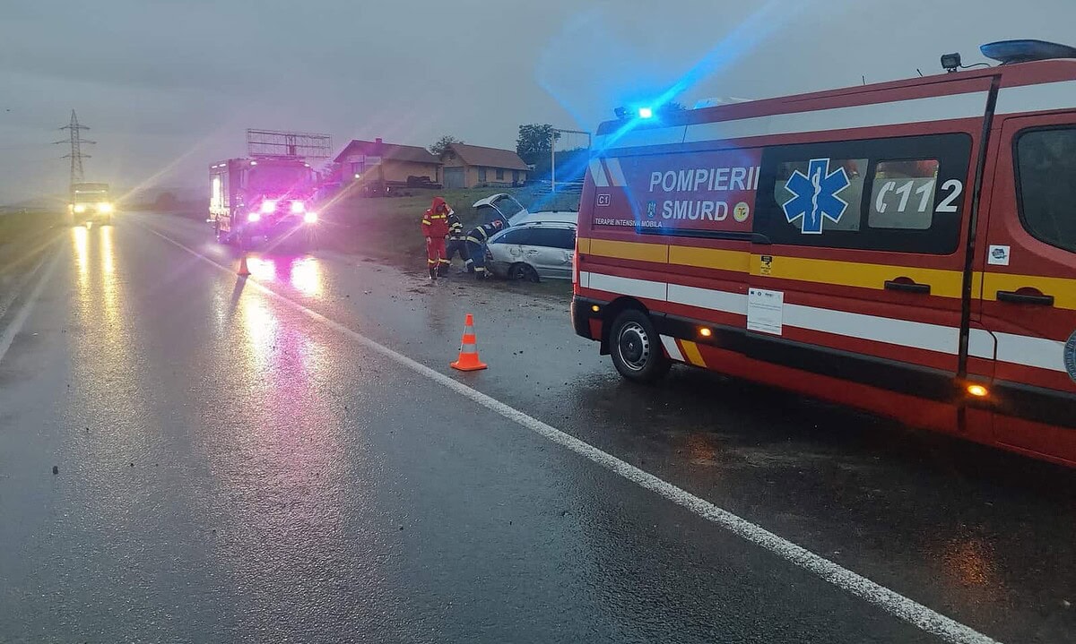 Detașamentul de pompieri Alba Iulia a intervenit pe DN1, în zona localității Sântimbru, unde un autoturism a părăsit partea carosabilă.