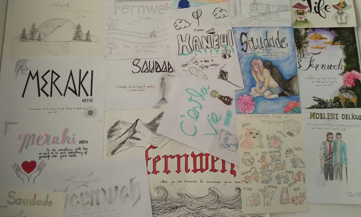 1. Alegerea unui cuvânt, cu o semnificație aparte, din diferite limbi (franceză, germană, portugheză, suedeză, bulgară etc.) însoțit de sensul acestuia notat în limba engleză și de o imagine reprezentativă pentru înțelesul cuvântului. În cadrul prezentărilor, elevii au explicat motivele alegerii cuvântului și a imaginii care l-a însoțit. (liceu)