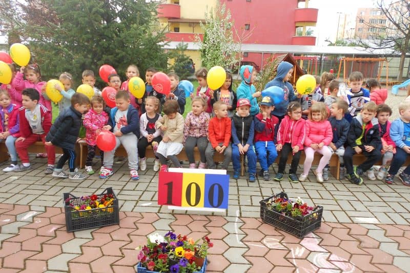 Manifestările artistice au adus culoare şi implicare în trăirea evenimentului, astfel că preşcolarii dibaci, îndrumaţi de doamnele educatoare au realizat în cadrul unor ateliere de creaţie siluete cu costume populare românești, steaguri tricolore, au imprimat cu acuarele pe tricouri mânuțe tricolore (roșii, galbene şi albastre), au confecţionat inimioare, au pictat baloane în culorile drapelului naţional sau chiar au plantat flori, toate acestea fiind într-un număr sugestiv şi anume… 100.