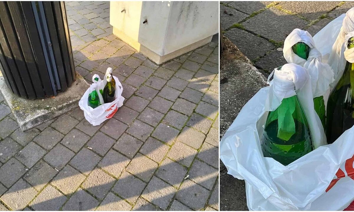 Potrivit surselor alba24.ro, sticlele, patru la număr au fost găsite într-un coș de gunoi amplasat lângă Catedrala din Cetatea Alba Carolina.