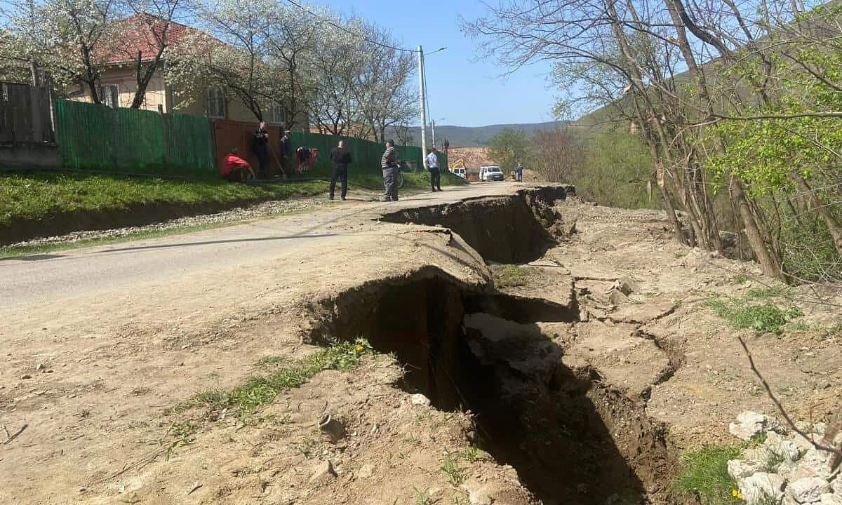 FOTO: Alunecare de teren în satul Lunca din comuna Valea Lungă, pe o porțiune de 50 de metri. Acces restricționat la zeci de case