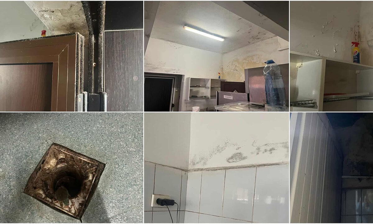 În timpul inspecției, inspectorii au observat că pereții și tavanul erau acoperiți de mucegai, iar produsele alimentare erau depozitate în contact direct cu pavimentul. De asemenea, existau probleme grave de igrasie și infiltrații de apă prin pereți, iar blocul alimentar nu era igienizat corespunzător.