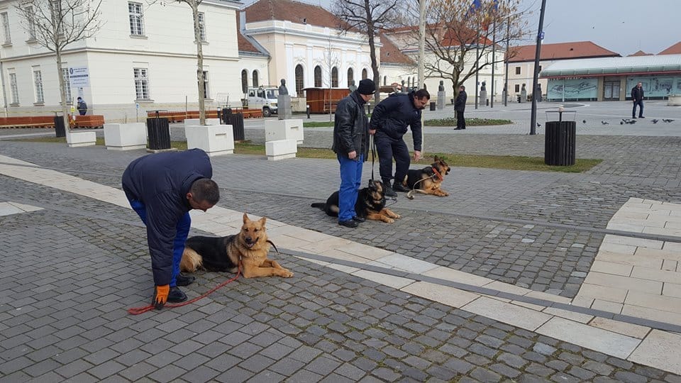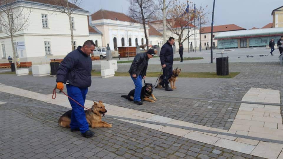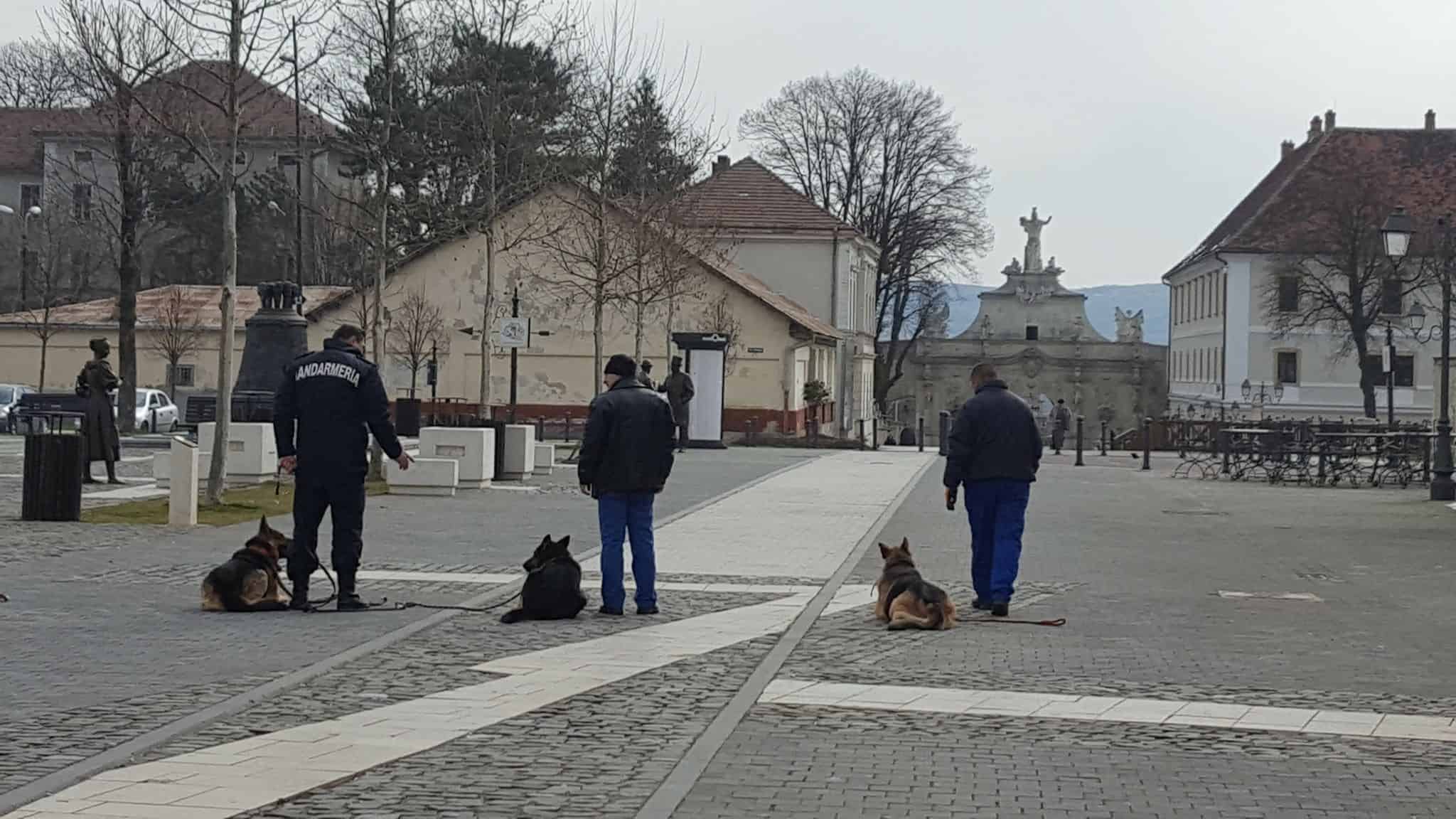 FOTO: Antrenament cu câini pentru Ziua Jandarmeriei Române, în Piața Cetății din Alba Iulia