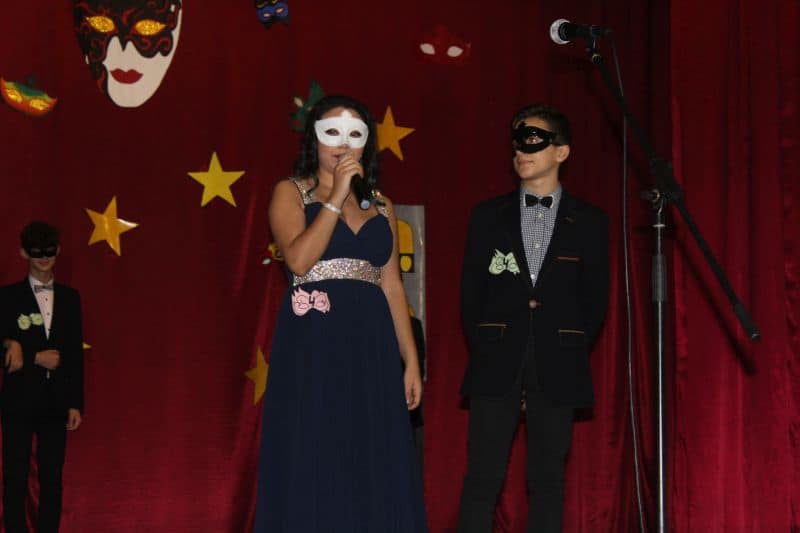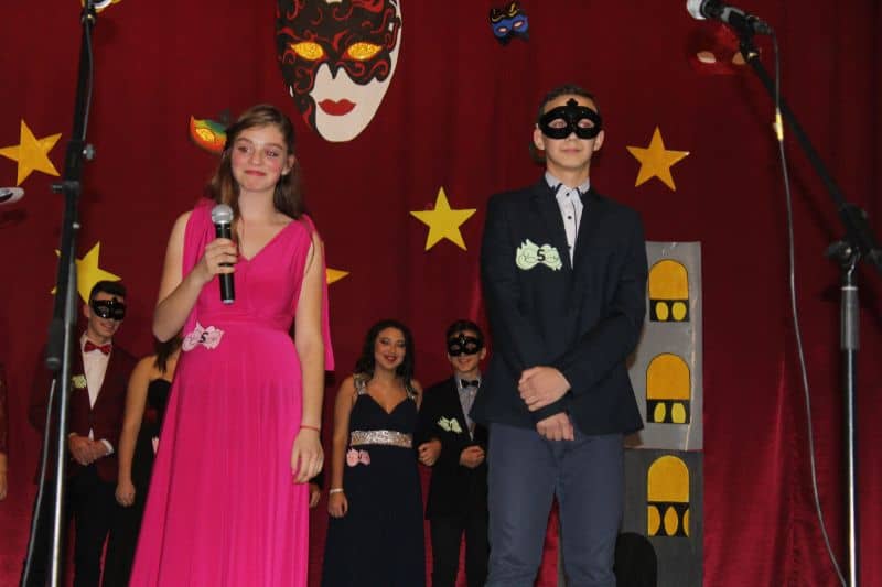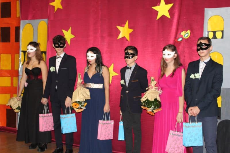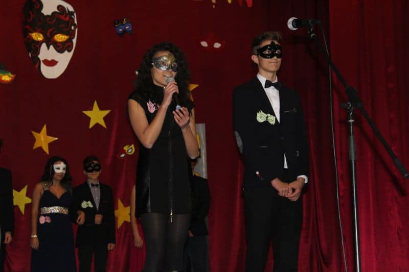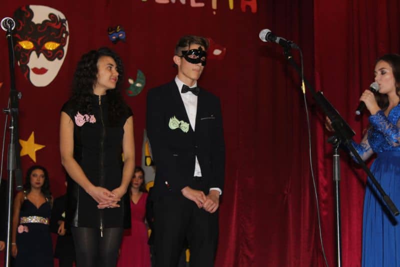Costumate și având pe față măști, cele 5 perechi de boboci s-au întrecut pentru mult râvnitele titluri care s-au decernat la finalul serii, de Miss și Mister al "balului venețian".
