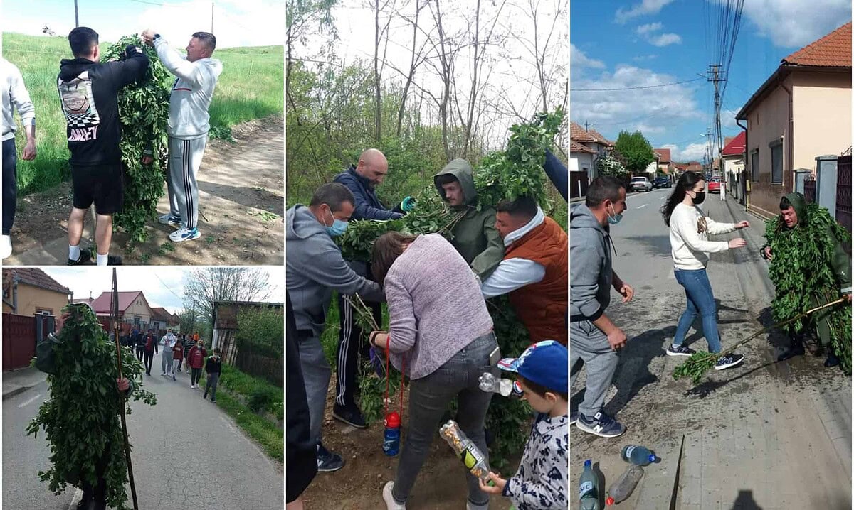 Unul dintre tinerii satului se îmbracă în crengi, pentru a reprezenta o creatură verde, care semnifică abundența.