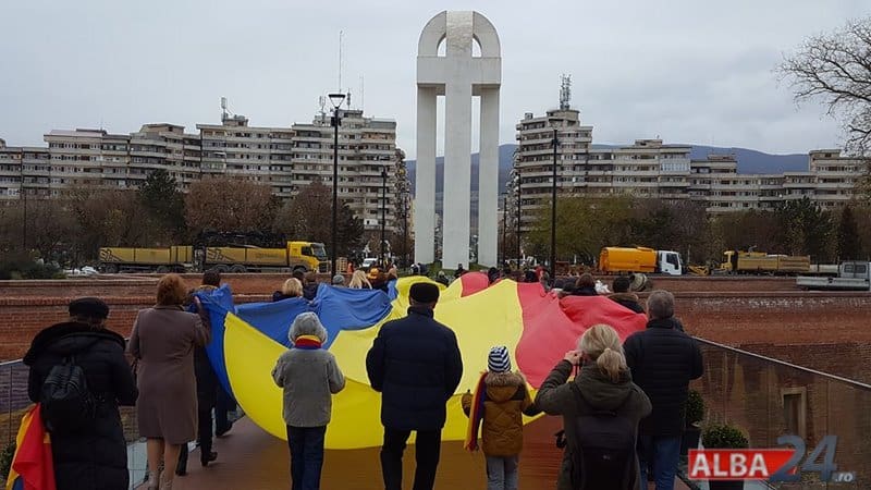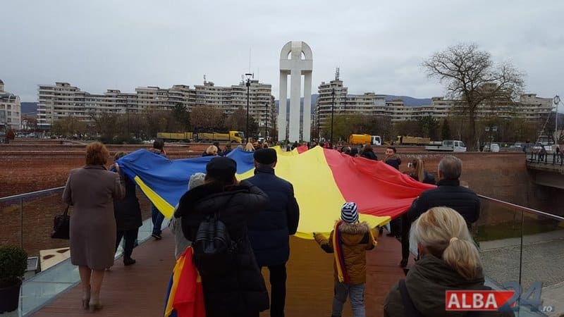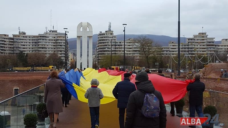Un tricolor de 300 de metri pătrați, purtat pe umeri de tinerii liberali, a ajuns miercuri la Alba Iulia. Steagul a pornit la drum, trecând prin toate județele țării, în 14 septembrie și pe 28 noiembrie a ajuns în capitala de suflet a tuturor românilor, la Alba Iulia, unde a fost primit de zeci de oameni în frunte cu primarul Mircea Hava.