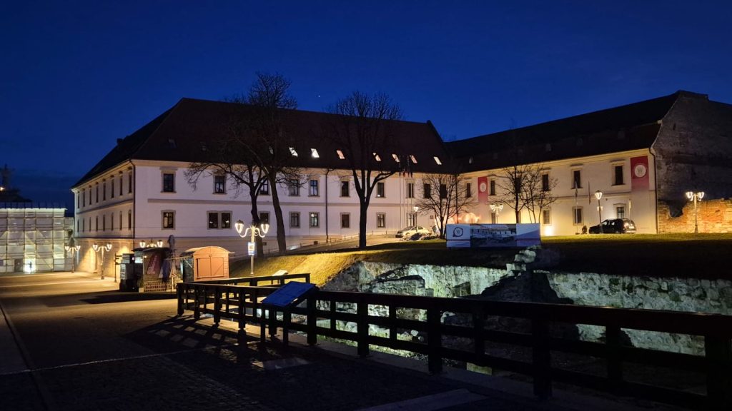 Fațada Clădirii Consiliului Județean Alba, clădire aflată în Cetatea Alba Carolina, lângă Poarta a III-a, nu era iluminată în roșu, în jurul orei 18.30.