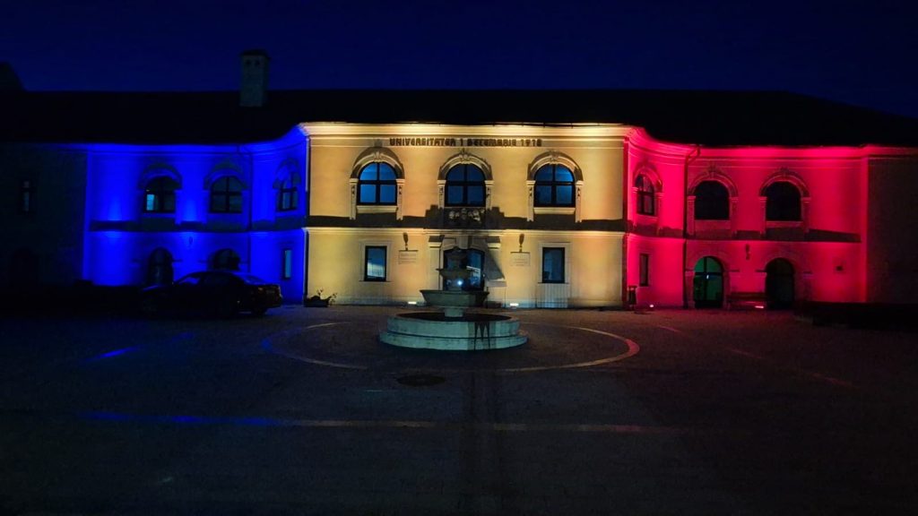 Clădirea rectoratului Universității ”1 Decembrie 1918” din Alba Iulia, era iluminată, dar în tricolor.