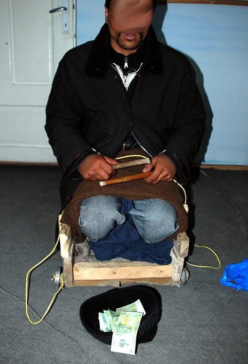 FOTO: Cerşetori din Aiud, amendaţi de jandarmi. Cei doi bărbaţi îi înjurau pe trecătorii care "nu erau milostivi"