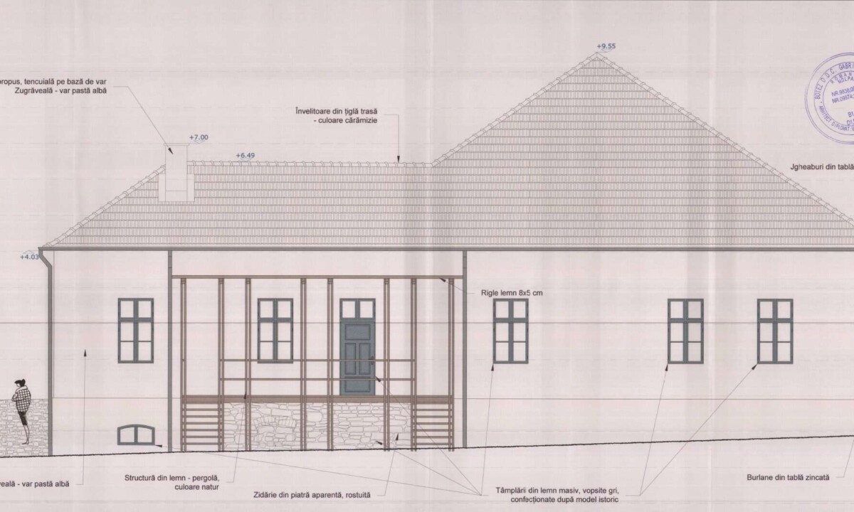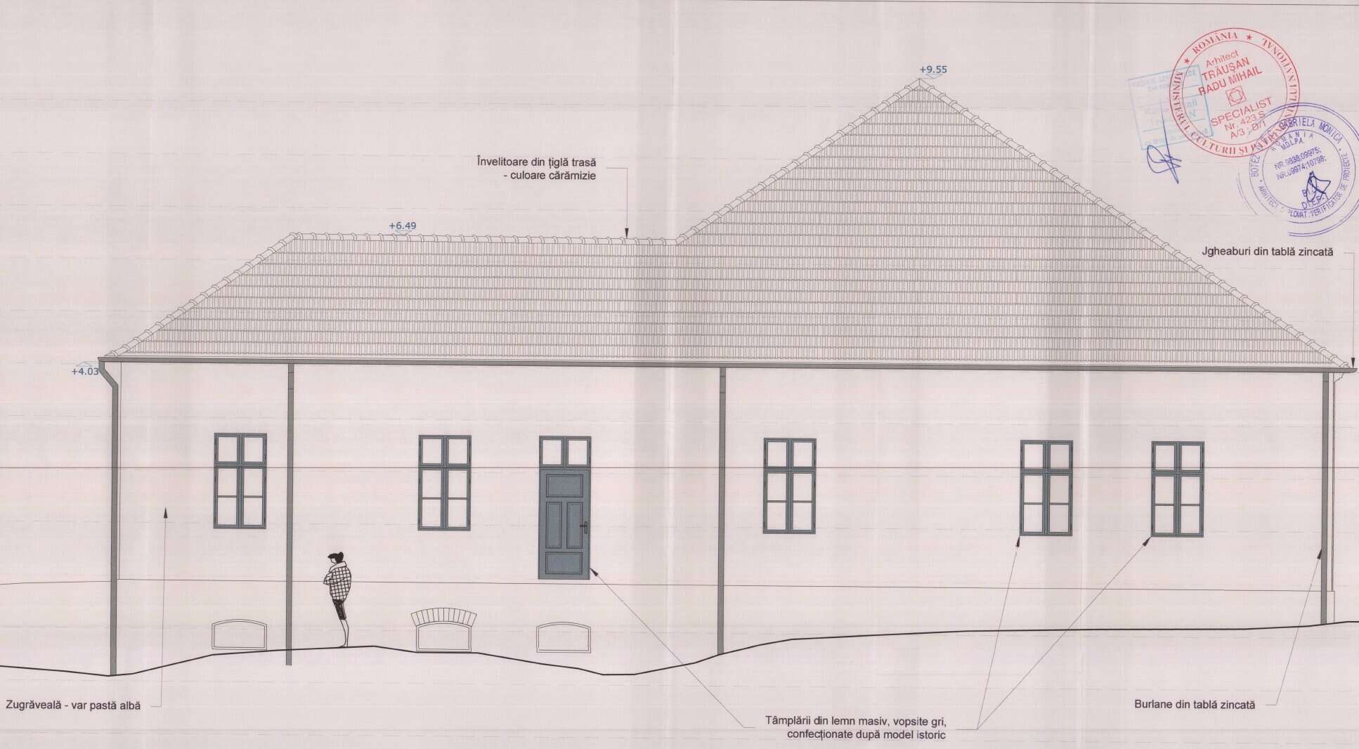 - Restaurarea zidăriilor, tencuielilor, modenaturilor pe baza martorilor existenți in situ;