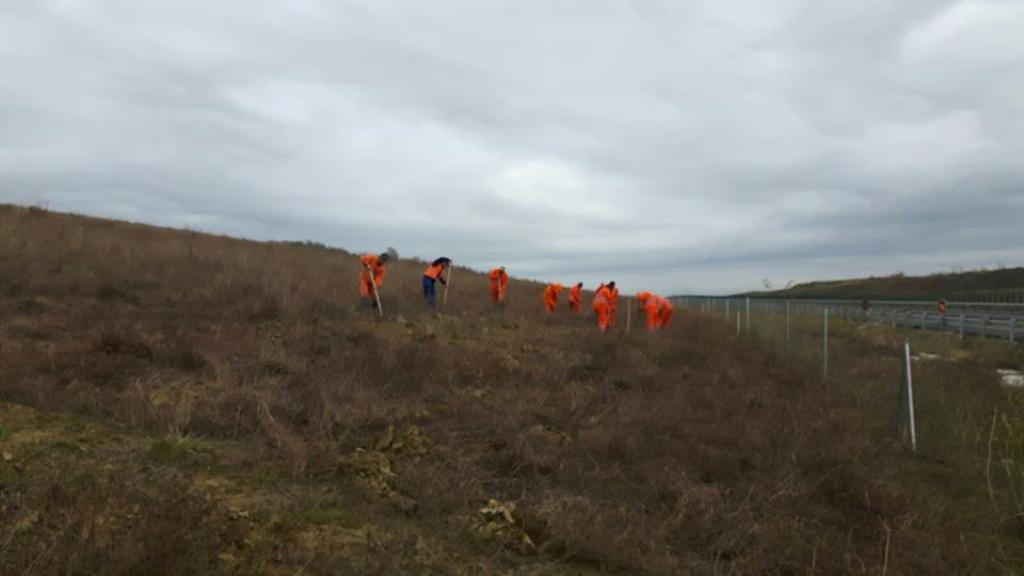 FOTO: CNAIR plantează salcâmi în zona cu alunecări de teren de pe Autostrada Orăştie-Sibiu