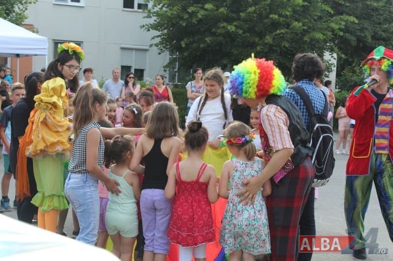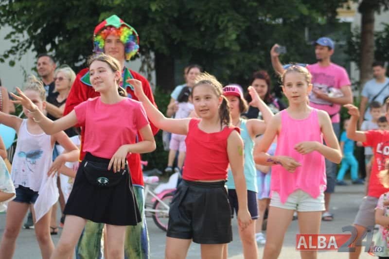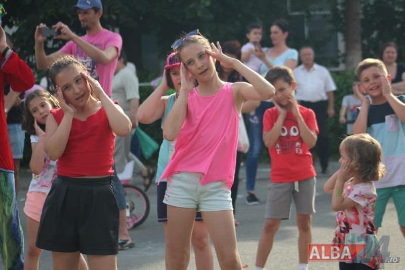 Componenții Cercului de Teatru al Casei de Cultură Cugir deghizați în personaje din poveșțile copilăriei, interacționând cu cei mai mici dintre spectatori, prin animație stradală , animatorii au dansat și s-au jucat împreună cu micii spectatori.