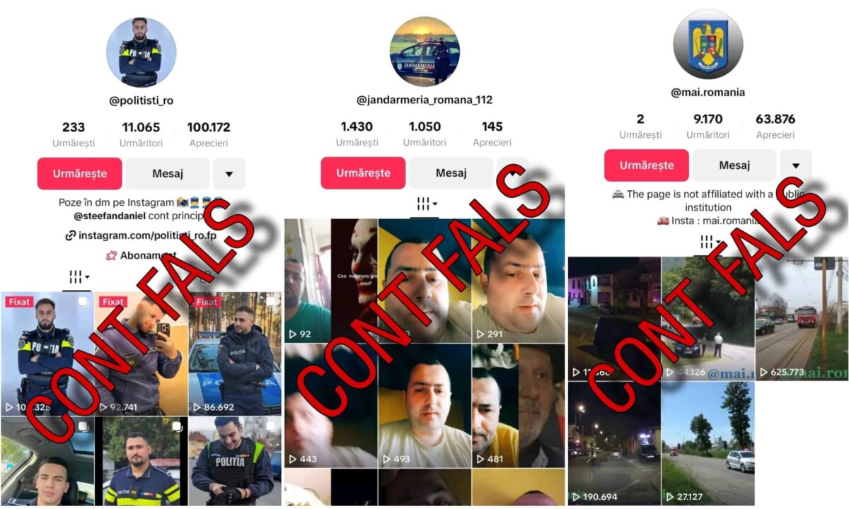 Ministerul Afacerilor Interne a avertizat vineri, 4 aprilie, asupra existenței unui ecosistem de conturi false pe rețeaua de socializare TikTok, conturi care sunt prezentate ca fiind ale unor agenți sau ofițeri de poliție sau chiar ca fiind pagini oficiale ale MAI sau structurilor din minister.