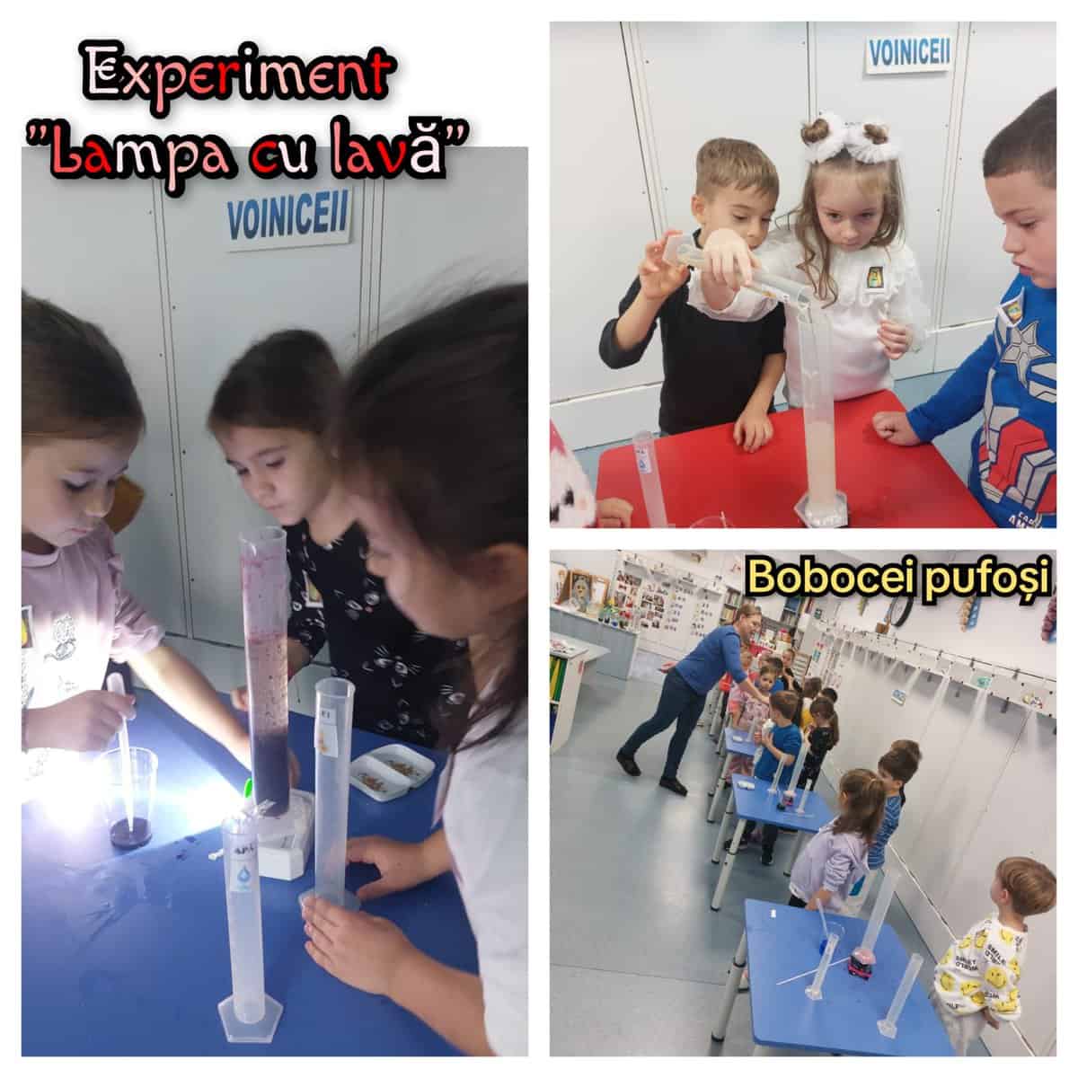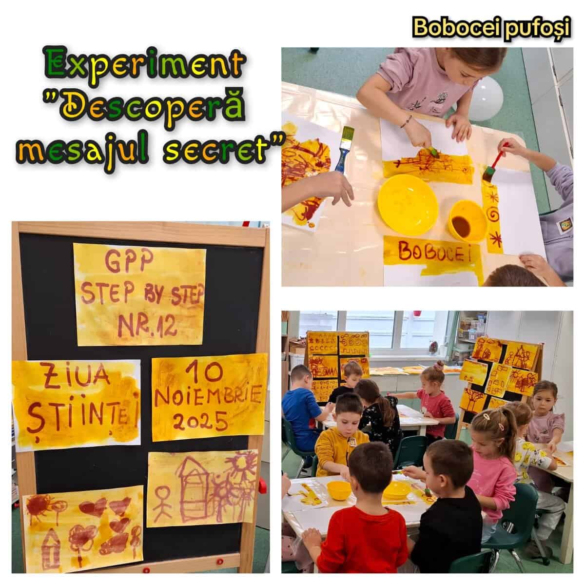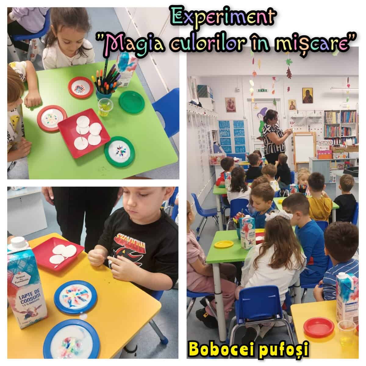 În fiecare sală de grupă, educatoarele au pregătit câte un experiment, iar copiii au participat prin rotație, explorând activități adaptate nivelului lor de vârstă.