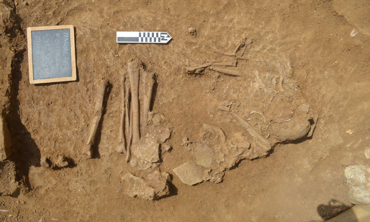 Cu prilejul cercetărilor a fost descoperit scheletul unui copil sau adolescent de aproximativ 10 ani, alături de cel al unui animal, precum și un vârf de săgeată de os.