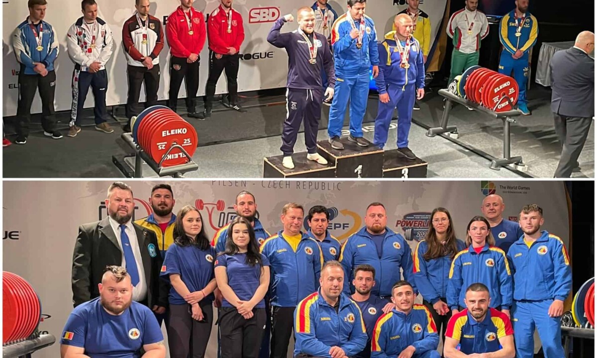FOTO: CS Unirea Alba Iulia, 7 medalii la Campionatele Europene de Powerlifting din Cehia. Andrei Irimie, aur la împins din culcat