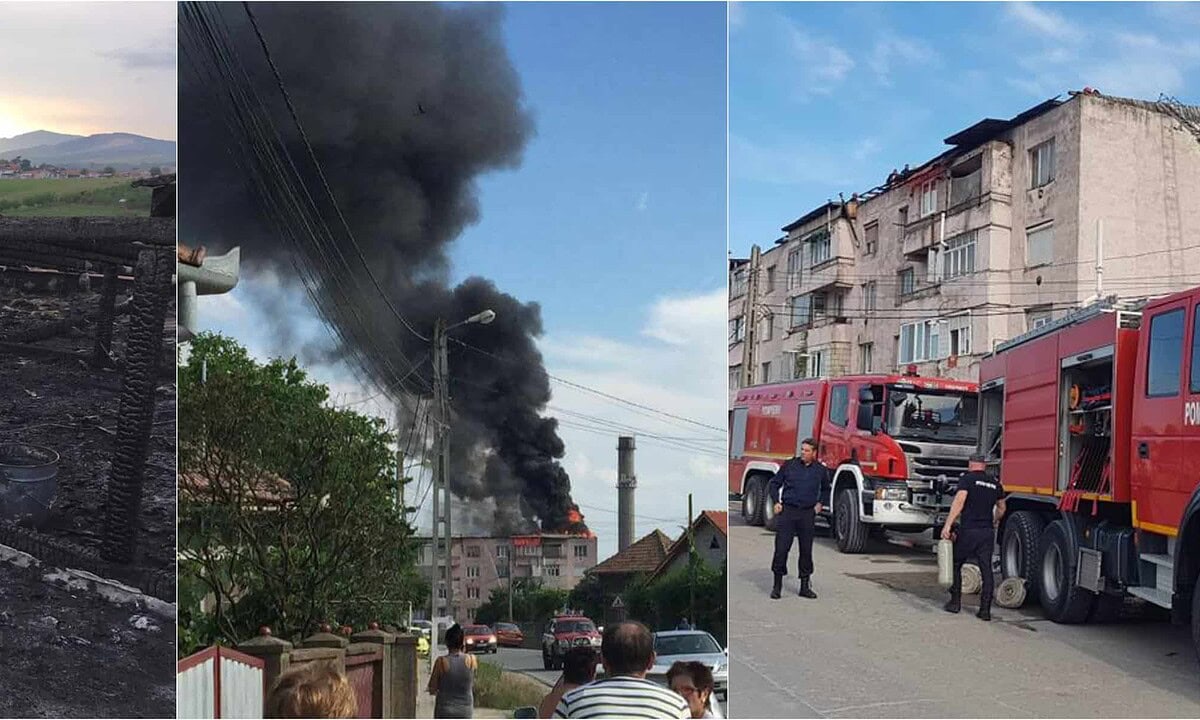 FOTO: Cum a luat foc acoperișul unui bloc din Teiuș, din cauza unui meseriaș. Pedeapsa primită de cel care a provocat incendiul