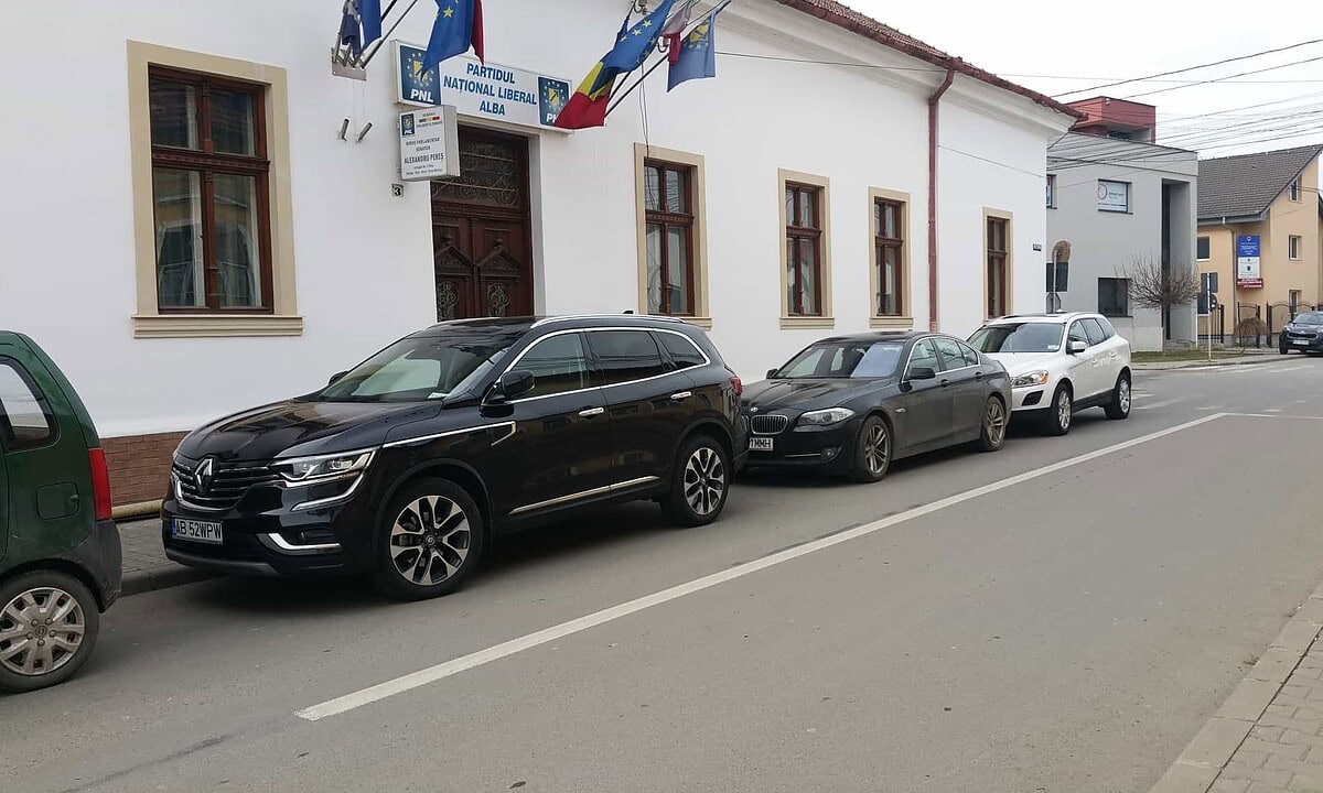 FOTO: Cum arată cele mai ”grele” mașini din Alba Iulia, parcate lângă Poliția Locală, în fața sediului PNL