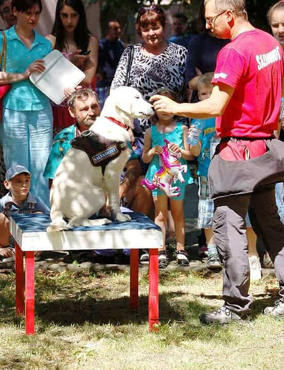 Una dintre aceste surprize a fost și o demonstrație de dresaj, oferită de Tiberiu Krizbai, de la Serviciul Public Salvamont al Județului Alba, împreună cu Inata Mediguard, o cățelușă Golden Retriever.
