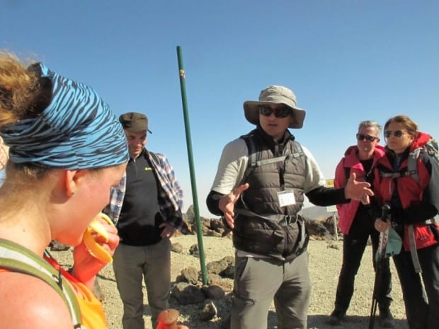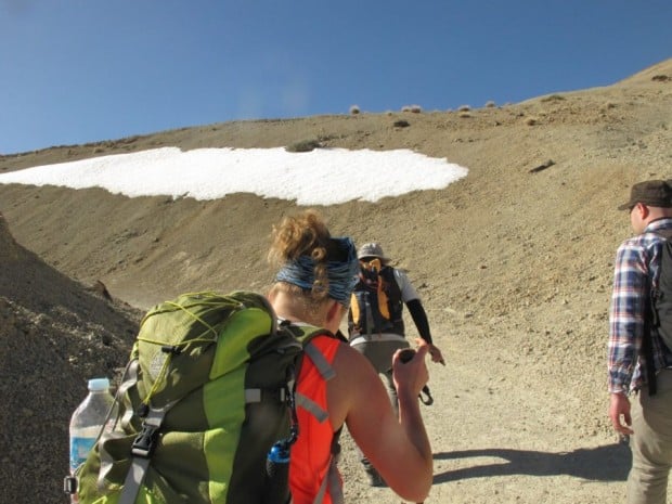 După vreo 2 ore de mers, ajugem la “No return point”, un loc unde ghidul ne spune că ar trebui să simțim efectele altitudinii, iar cei obosiți sau amețiți să se întoarcă. Două nemțoaice și Christine, o doamnă la vreo 55 de ani din Ungaria, sunt mult în urmă. Le așteptăm și, spre surprinderea și bucuria tuturor, decid să meargă mai departe. Urcăm la refugiul Altavista. 3260 m. Aici lum o masă copioasă și ne răsfățăm cu o pauză de mai bine de jumătate de oră”.
