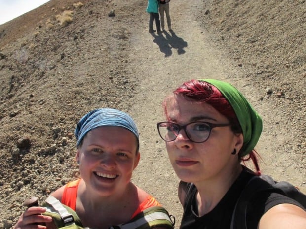 ”Ultima pauză o facem la intrarea în rezervație și ne sunt verificate permisele. Mie a început să îmi curgă sânge din nas și vreau să mă grăbesc spre vârf. Decidem să urcăm fiecare în ritmul nostru și să ne regrupăm sus. Urcușul îmi amintea de Viștea Mare, porțiunea ultimă de dinainte de Vârful Moldoveanu: abrupt și parcă făra sfârșit. Îmi aleg un ritm lent, cu pași mici și monotoni. Am un singur băț și mă sprijin uneori cu ambele mâini în el. Sunt porțiuni la care mă trag în mâini, dar știu că dacă mă opresc îmi va fi mult mai greu să pornesc. Mirosul de sulf e tot mai puternic și sunt crăpături între pietre din care iese acel gaz puturos. Pe ultima parte, piatra este albă, asemanatoare calcarului”.