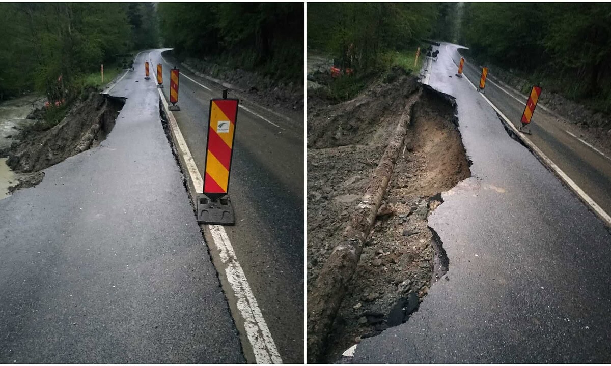 FOTO: Drum național din Apuseni, surpat în urma ploilor. Traficul este restricționat pe un sens de circulație