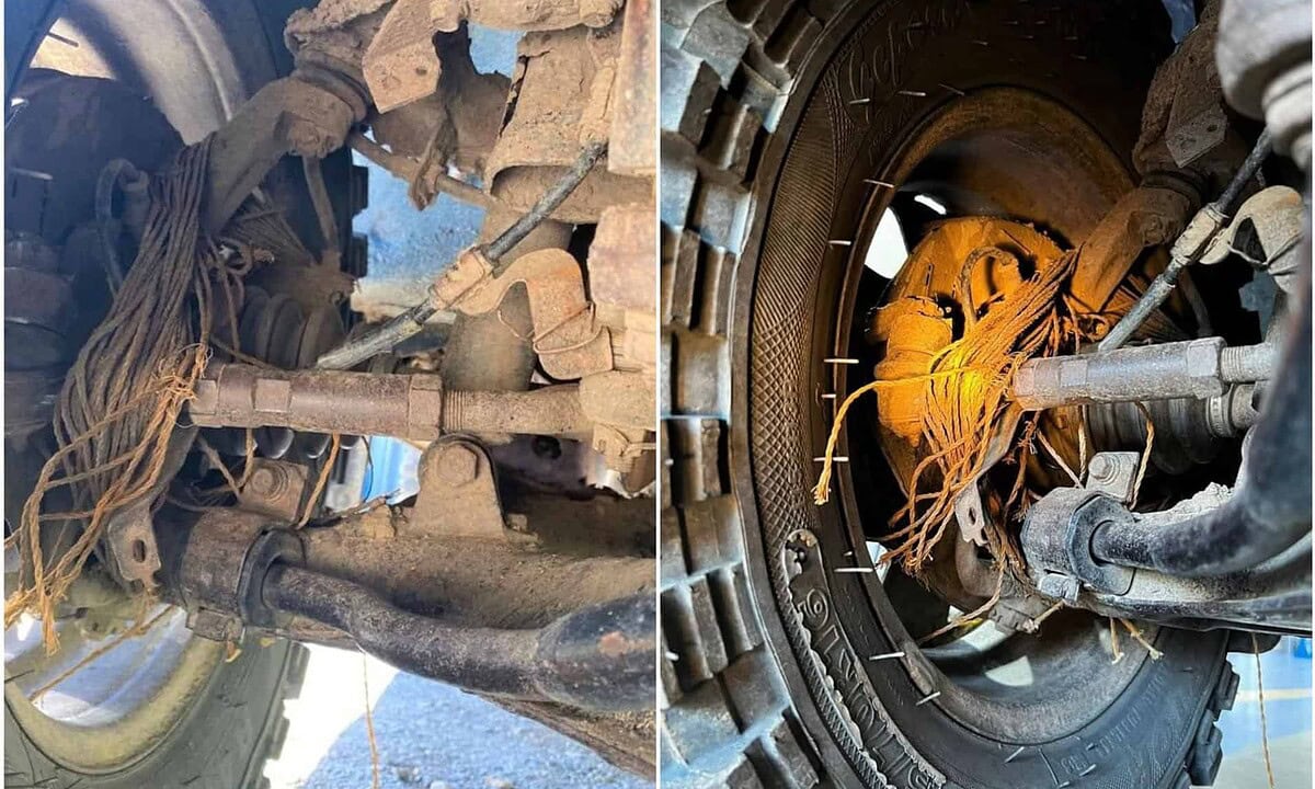 La inspecția mașinii, angajații de la RAR au avut parte de o surpriză: multe elemente de siguranță din zona roților erau legate cu frânghii. De asemenea, angajații RAR au mai observat că nu funcționau farurile, iar bara din față a mașinii era legată cu sârmă.