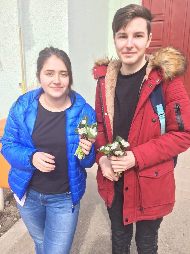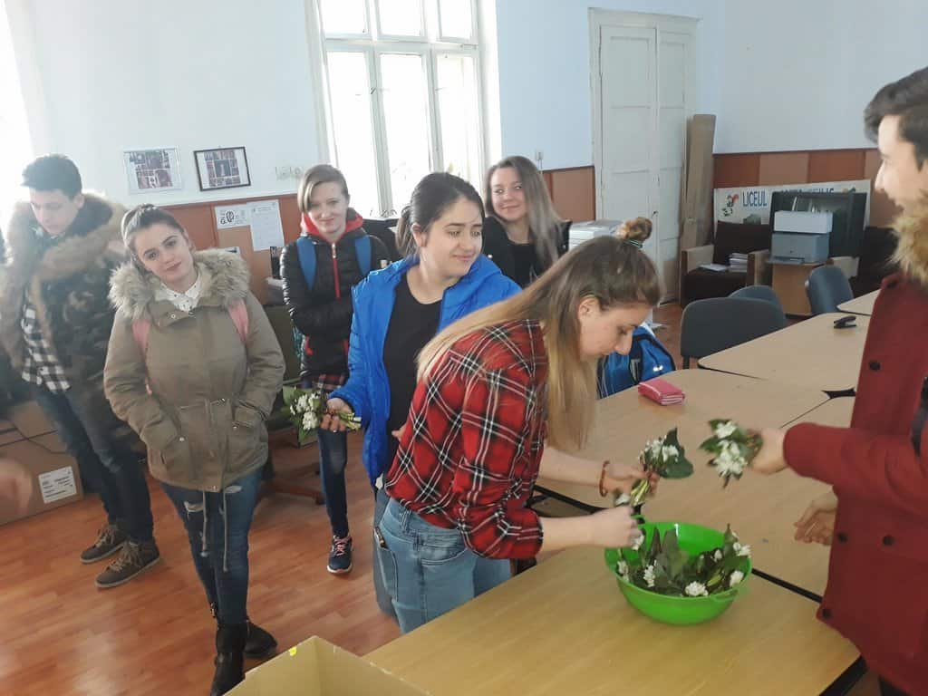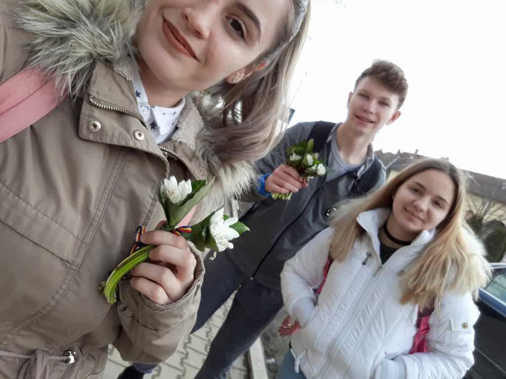 Dacă la începutul lunii au confecţionat mărţişoare pe care le-au oferit trecătorilor întâlniţi pe străzile oraşului, de 8 Martie aceștia au cumpărat 100 de bucheţele de ghiocei. În anul în care România împlineşte 100 de ani, voluntarii Consiliului Elevilor au luat hotărârea să decoreze cele 100 de bucheţele de ghiocei cu tricolorul românesc.