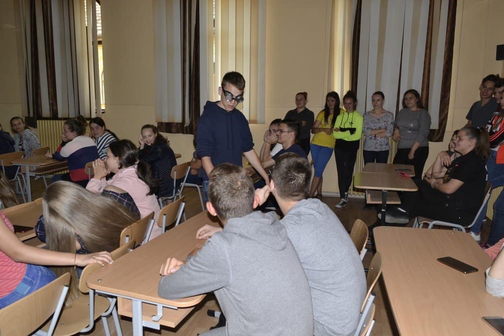 FOTO: Elevii din Blaj au putut încerca ochelarii ce simulează efectele consumului de droguri și alcool