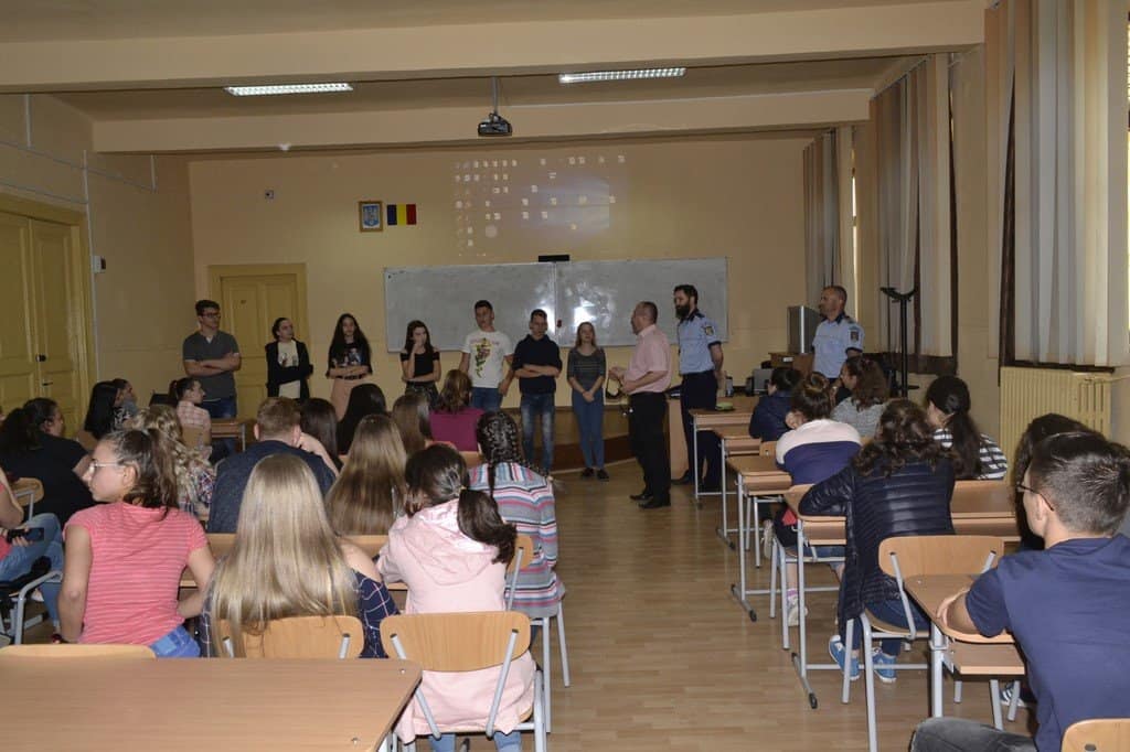 În transmiterea mesajelor preventive, poliţiştii şi specialiştii instituţiilor partenere au fost susţinuţi de doamna psiholog şcolar Broscăţan Alina şi de doamna profesor Zaharia Adriana.