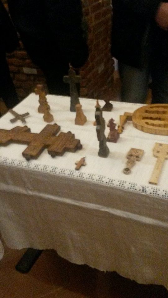 Icoanele pe lemn sunt realizate de Vasile Lefter, artist cu pregătire academică și o lungă experiență în pictura bisericească. Nicolae Muntean, meșter popular ce a primit titlul de tezaur uman viu, expune icoane pe sticlă, Teoși Ioana Bindea, cruci de lemn sculptate, iar Jorj Dimitriu, câteva obiecte casnice tradiționale din lemn.