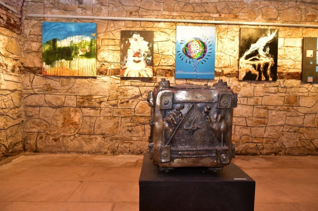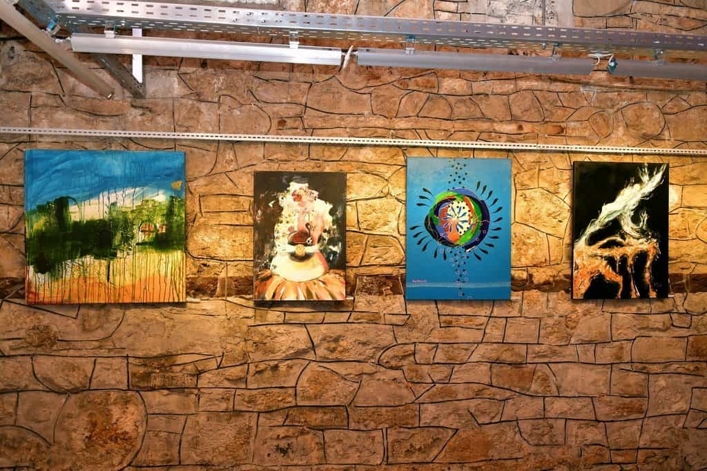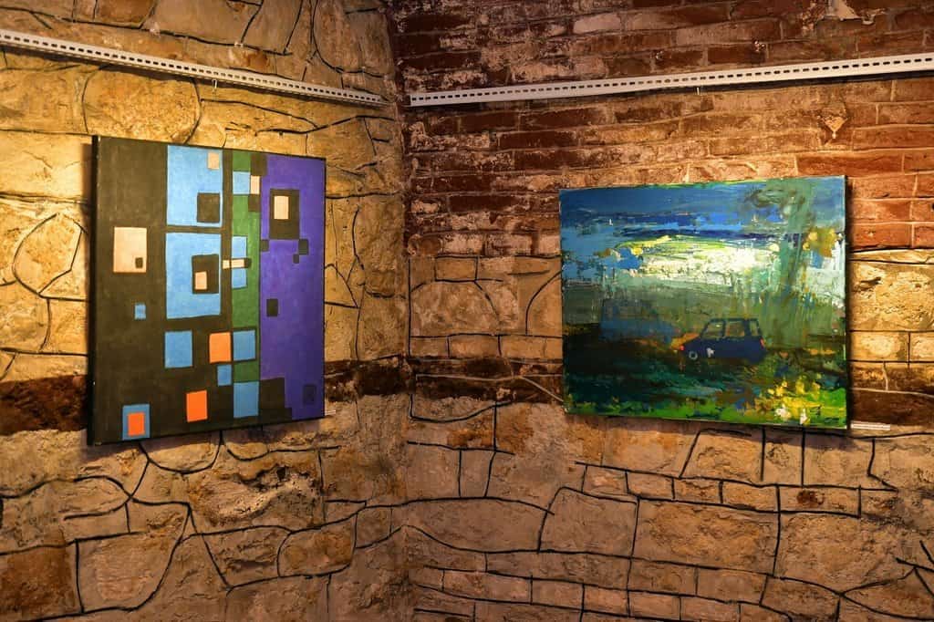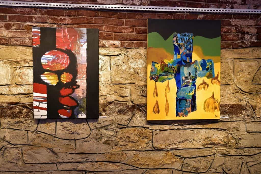 Astfel, pe simezele galeriei, într-o abordare incitată și bine conturată conceptual, se află lucări realizate în peste 20 de ani de proiecte Inter-Art la Aiud, lucrări care au fost expuse de-a lungul timpului în expoziții consacrate din Viena, Geneva, Bruxelles, New York, Washington, Vichy, Cusset etc. și semnate de talentate